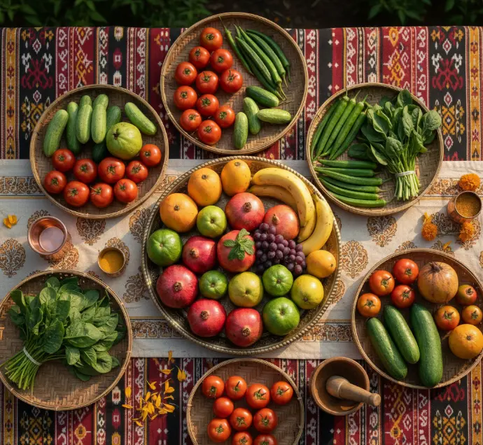 A vibrant assortment of seasonal fruits and vegetables, ideal for a healthy lifestyle.